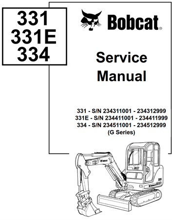 Original Factory Service Repair Manual for the Bobcat 331, 331E, 334 Excavator (G Series).