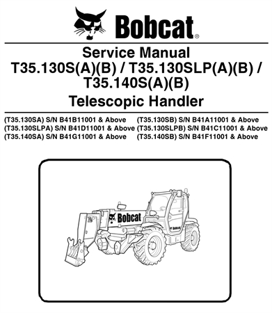 Original Factory Service Repair Manual for the Bobcat T35.130SA, T35.130SB, T35.130SLPA, T35.130SLPB, T35.140SA, T35.140SB Telescopic Handler.