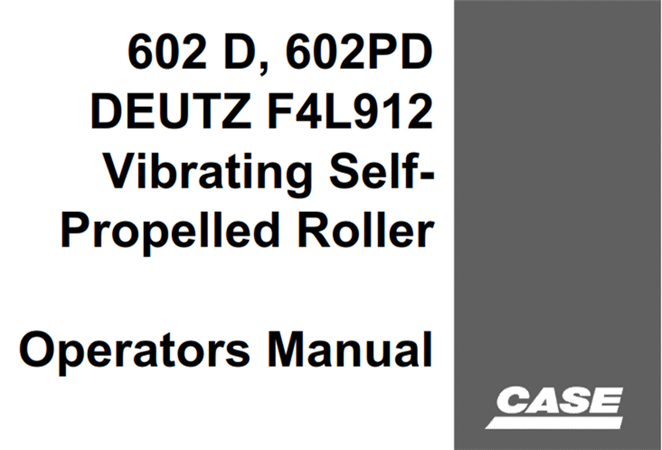 Original Factory Operator’s Manual for the Case 602D/602PD DEUTZ F4L912 Vibrating Self-Propelled Roller.