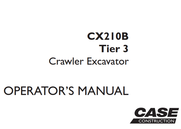 Original Factory Operator’s Manual for the Case CX210B Tier 3 Crawler Excavator.