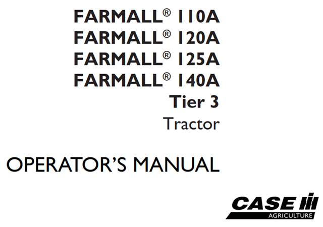 Case IH FARMALL 110A / FARMALL 120A / FARMALL 125A / FARMALL 140A Tier 3 Tractor Operator’s Manual