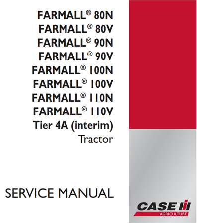 Original Factory Service Repair Manual for the Case IH FARMALL 80N, FARMALL 80V, FARMALL 90N, FARMALL 90V, FARMALL 100N, FARMALL 100V, FARMALL 110N, FARMALL 110V – Tier 4A (interim) Tractor.