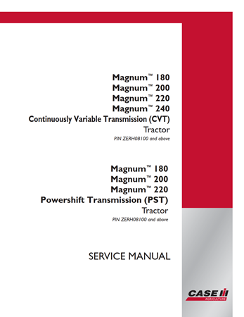 Case IH Magnum 180 / Magnum 200 / Magnum 220 / Magnum 240 Continuously Variable Transmission (CVT), Magnum 180 / Magnum 200 / Magnum 220 Powershift Transmission (PST) Tractors Service Repair Manual (PIN ZERH08100 and above)
