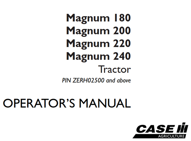 Original Factory Operator’s Manual for the Case IH Magnum 180, Magnum 200, Magnum 220, Magnum 240 Tractor.