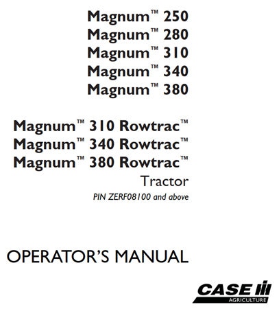 Original Factory Operator’s Manual for the Case IH Magnum 250, Magnum 280, Magnum 310, Magnum 340, Magnum 380, Magnum 310 Rowtrac, Magnum 340 Rowtrac, Magnum 380 Rowtrac Tractor.