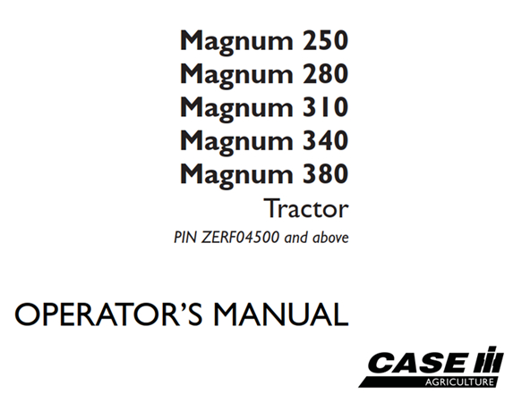 Original Factory Operator’s Manual for the Case IH Magnum 250, Magnum 280, Magnum 310, Magnum 340, Magnum 380 Tractor.