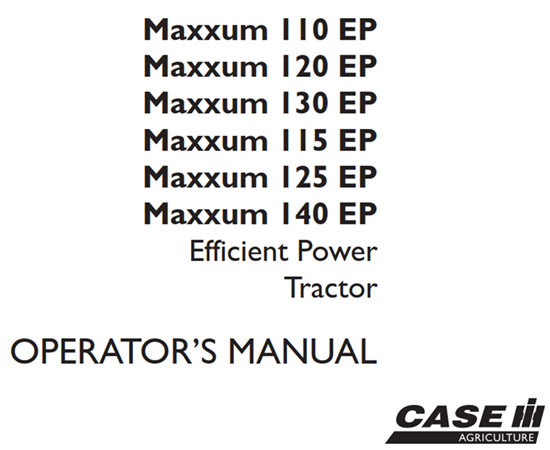 Original Factory Operator’s Manual for the Case IH Maxxum 110 EP, Maxxum 120 EP, Maxxum 130 EP, Maxxum 115 EP, Maxxum 125 EP, Maxxum 140 EP Efficient Power Tractor.