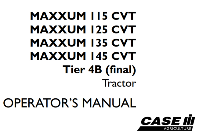Original Factory Operator’s Manual for the Case IH MAXXUM 115 CVT, MAXXUM 125 CVT, MAXXUM 135 CVT, MAXXUM 145 CVT Tier 4B (final) Tractor.
