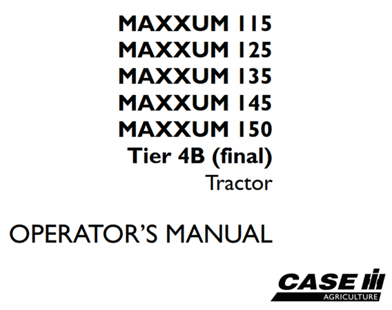 Original Factory Operator’s Manual for the Case IH MAXXUM 115 / MAXXUM 125 / MAXXUM 135 / MAXXUM 145 / MAXXUM 150 Tier 4B (final) Tractor.