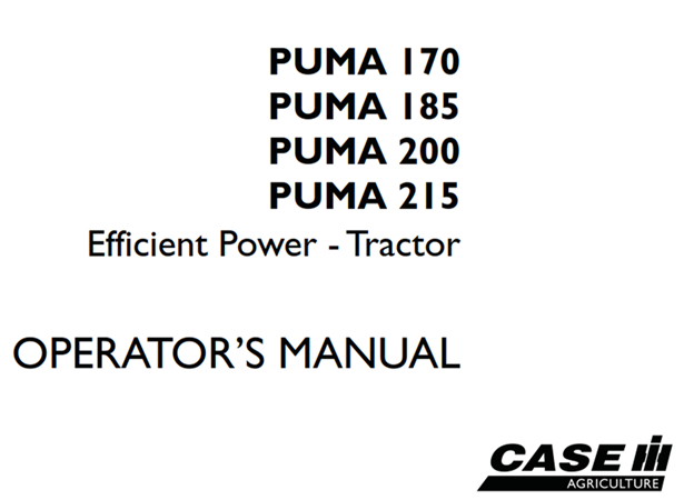 Original Factory Operator’s Manual for the Case IH PUMA 170, PUMA 185, PUMA 200, PUMA 215 Efficient Power – Tractor.