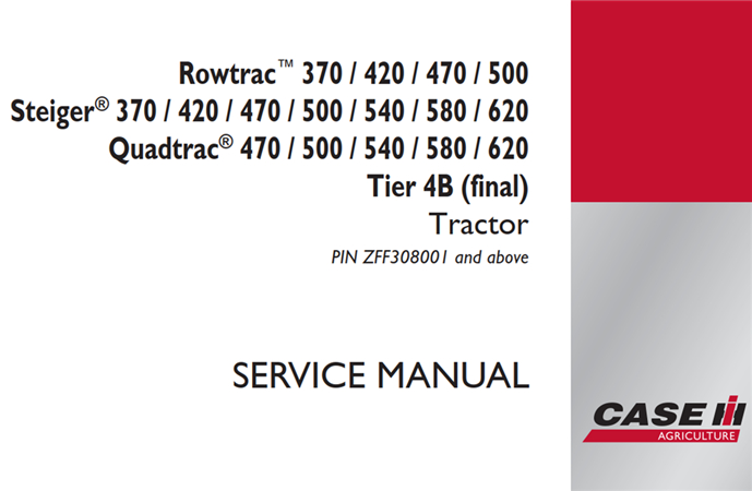 Original Factory Service Repair Manual for the Case IH Rowtrac 370/420/470/500, Steiger 370/420/470/500/540/580/620, Quadtrac 470/500/540/580/620 – Tier 4B (final) Tractor.