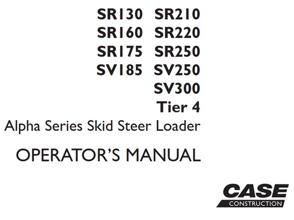 Original Factory Operator’s Manual for the Case SR130/SR210/SR160/SR220/SR175/SR250/SV185/SV250/SV300 Tier 4 Alpha Series Skid Steer Loader.