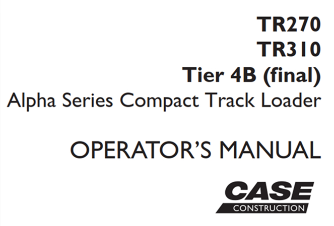Original Factory Operator’s Manual for the Case TR270/TR310 Tier 4B (final) Alpha Series Compact Track Loader.