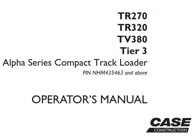 Case TR270/TR320/TV380 Tier 3 Alpha Series Compact Track Loader Operator’s Manual (PIN NHM435463 and above)