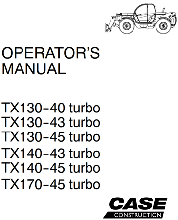 Original Factory Operator’s Manual for the Case TX130-40 turbo, TX130-43 turbo, TX130-45 turbo, TX140-43 turbo, TX140-45 turbo, TX170-45 turbo Telehandlers.