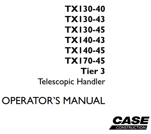 Original Factory Operator’s Manual for the Case TX130-40 / TX130-43 / TX130-45 / TX140-43 / TX140-45 / TX170-45 Tier 3 Telescopic Handler.