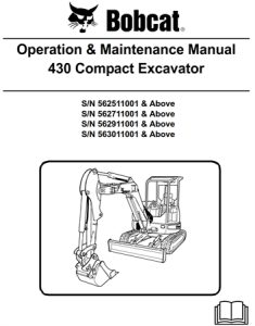 Bobcat 430 Compact Excavator Operation & Maintenance Manual (S/N 562511001 & Above, S/N 562711001 & Above, S/N 562911001 & Above, S/N 563011001 & Above)