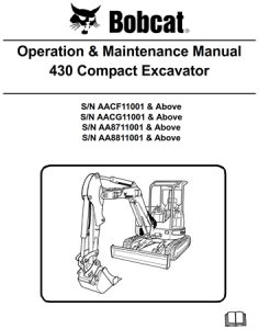 Bobcat 430 Compact Excavator Operation & Maintenance Manual (S/N AACF11001 & Above, S/N AACG11001 & Above, S/N AA8711001 & Above, S/N AA8811001 & Above)