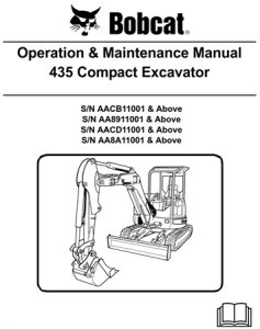 Bobcat 435 Compact Excavator Operation & Maintenance Manual (S/N AACB11001 & Above, S/N AA8911001 & Above, S/N AACD11001 & Above, S/N AA8A11001 & Above)
