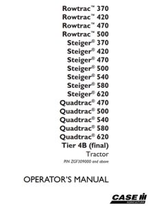 Case IH Rowtrac 370, Rowtrac 420, Rowtrac 470, Rowtrac 500, Steiger 370, Steiger 420, Steiger 470, Steiger 500, Steiger 540, Steiger 580, Steiger 620, Quadtrac 470, Quadtrac 500, Quadtrac 540, Quadtrac 580, Quadtrac 620 Tier 4B (final) Tractor Operator’s Manual (PIN ZGF309000 and above)