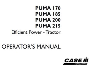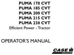Case IH PUMA 170 CVT, PUMA 185 CVT, PUMA 200 CVT, PUMA 215 CVT, PUMA 230 CVT Efficient Power – Tractor Operator’s Manual