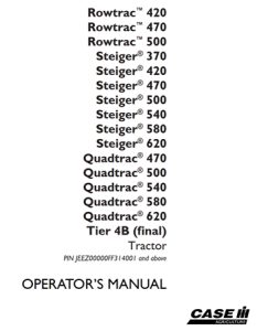 Case IH Rowtrac 420, Rowtrac 470, Rowtrac 500, Steiger 370, Steiger 420, Steiger 470, Steiger 500, Steiger 540, Steiger 580, Steiger 620, Quadtrac 470, Quadtrac 500, Quadtrac 540, Quadtrac 580, Quadtrac 620 Tier 4B (final) Tractor Operator’s Manual (PIN JEEZ00000FF314001 and above)