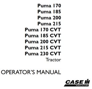 Case IH Puma 170, Puma 185, Puma 200, Puma 215, Puma 170 CVT, Puma 185 CVT, Puma 200 CVT, Puma 215 CVT, Puma 230 CVT Tractor Operator’s Manual