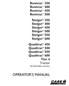 Case IH Rowtrac 350, Rowtrac 400, Rowtrac 450, Rowtrac 500, Steiger 350, Steiger 400, Steiger 450, Steiger 500, Steiger 550, Steiger 600, Quadtrac 450, Quadtrac 500, Quadtrac 550, Quadtrac 600 Tier 4 Tractor Operator’s Manual