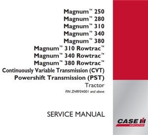 Case IH Magnum 250 / Magnum 280 / Magnum 310 / Magnum 340 / Magnum 380 / Magnum 310 Rowtrac / Magnum 340 Rowtrac / Magnum 380 Rowtrac – Continuously Variable Transmission (CVT) – Powershift Transmission (PST) Tier 4B Tractor Service Repair Manual (Serial Numbers: PIN ZGRF05001 and above; PIN ZHRF01001 and above)
