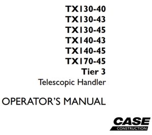 Case TX130-40 / TX130-43 / TX130-45 / TX140-43 / TX140-45 / TX170-45 Tier 3 Telescopic Handler Operator’s Manual