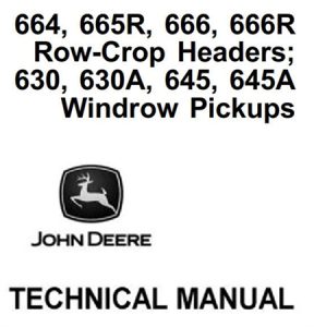 John Deere 664, 665R, 666, 666R Row-Crop Headers, 630, 630A, 645, 645A Windrow Pickups Technical Manual