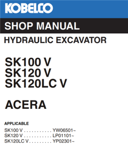 Kobelco SK100 V, SK120 V, SK120LC V Acera Hydraulic Excavator Service Repair Manual