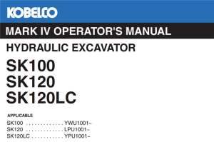 Kobelco SK100 / SK120 / SK120LC MARK IV Hydraulic Excavator Operator’s Manual