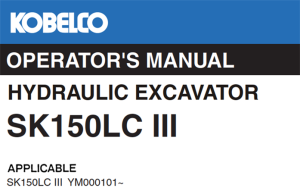 Kobelco SK150LC III Hydraulic Excavator Operator’s Manual