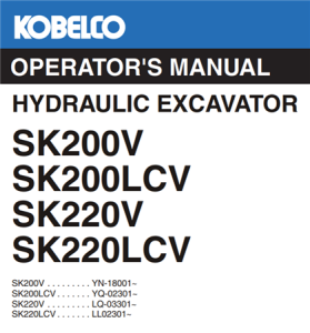 Kobelco SK200V, SK200LCV, SK220V, SK220LCV Hydraulic Excavator Operator’s Manual