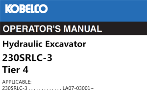 Kobelco 230SRLC-3 Tier 4 Hydraulic Excavator Operator’s Manual