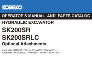 Kobelco SK200SR, SK200SRLC Hydraulic Excavator Optional Attachments Operator’s Manual & Parts Catalog