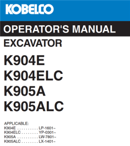 Kobelco K904E, K904ELC, K905A, K905ALC Excavator Operator’s Manual