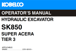Kobelco SK850 Super Acera Tier 3 Hydraulic Excavator Operator’s Manual (Applicable: LY01-00101~)