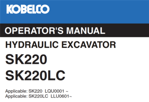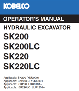 Kobelco SK200, SK200LC, SK220, SK220LC Hydraulic Excavator Operator’s Manual