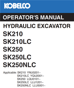 Kobelco SK210, SK210LC, SK250, SK250LC, SK250NLC Hydraulic Excavator Operator’s Manual