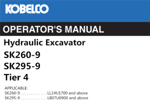 Kobelco SK260-9, SK295-9 Tier 4 Hydraulic Excavator Operator’s Manual