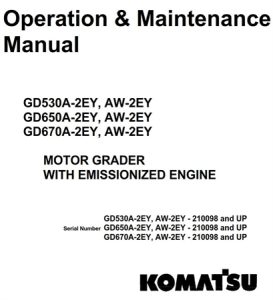 Komatsu GD530A-2EY, GD530AW-2EY, GD650A-2EY, GD650AW-2EY, GD670A-2EY, GD670AW-2EY Motor Grader With Emissionized Engine Operation & Maintenance Manual