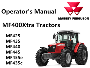 Massey Ferguson MF400Xtra Tractors Models MF425, MF435, MF440, MF445, MF455e, MF435c Operator’s Manual