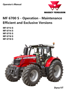 Massey Ferguson MF6700S Dyna-VT Series (MF6713S, MF6714S, MF6715S, MF6716S, MF6718S) Efficient and Exclusive Versions Tractors Operation & Maintenance Manual