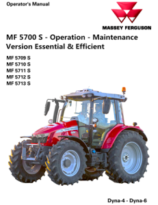 Massey Ferguson MF5700S Series MF5709S, MF5710S, MF5711S, MF5712S, MF5713S Dyna-4/Dyna-6 Efficient & Essential Version Tractors Operation & Maintenance Manual