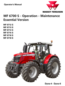Massey Ferguson MF6700S Series (MF6712S, MF6713S, MF6714S, MF6715S, MF6716S, MF6718S) Dyna-4/Dyna-6 Essential Version Tractors Operation & Maintenance Manual