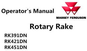 Massey Ferguson RK391DN/RK421DN/RK451DN Rotary Rake Operator’s Manual