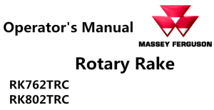 Massey Ferguson RK762TRC/RK802TRC Rotary Rake Operator’s Manual