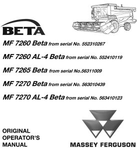 Massey Ferguson MF7260 Beta, MF7260 AL-4 Beta, MF7265 Beta, MF7270 Beta, MF7270 AL-4 Beta Combines Operator’s Manual